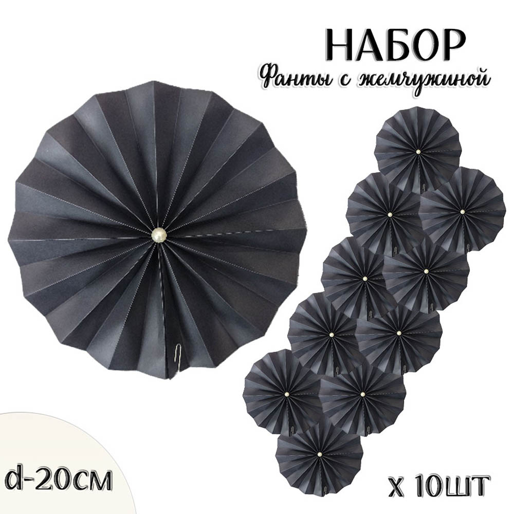 Фанты с жемчужиной НАБОР 10шт х 20см, черный