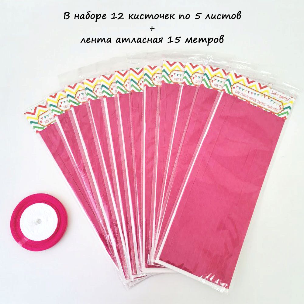 Гирлянда тассел 12 кисточек по 5 листов, малиновый