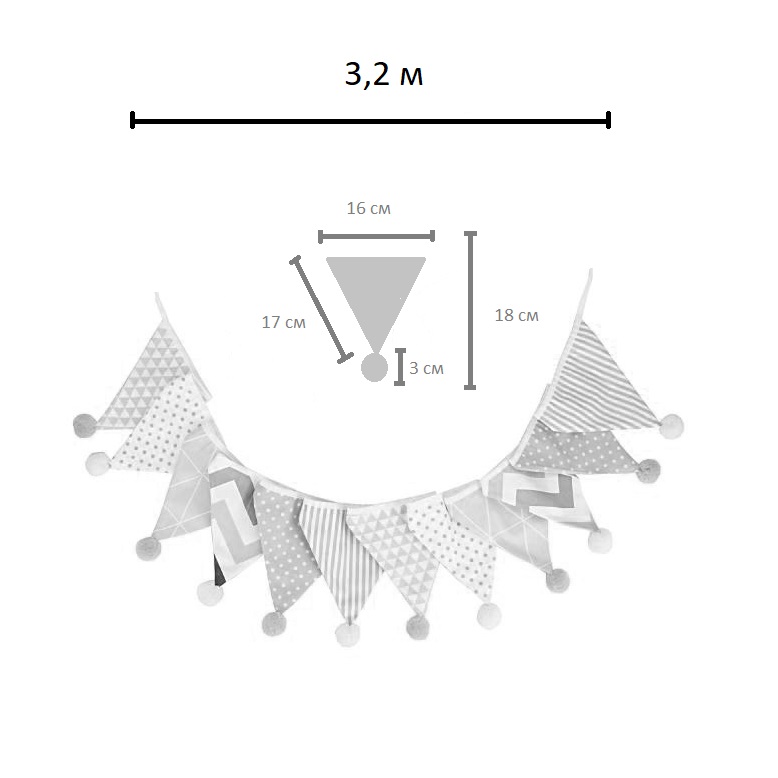 Гирлянда состоит из 12 флажков, общая длина составляет 3,2 м