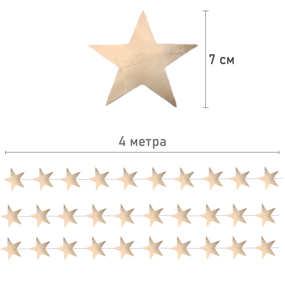 Гирлянда "Звезды" перламутровые 7 см х 4 м, Бежевый