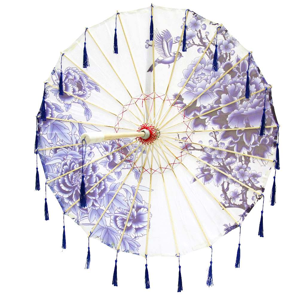 Китайские тканевые зонтики цветочные с кисточками 82х54 см
