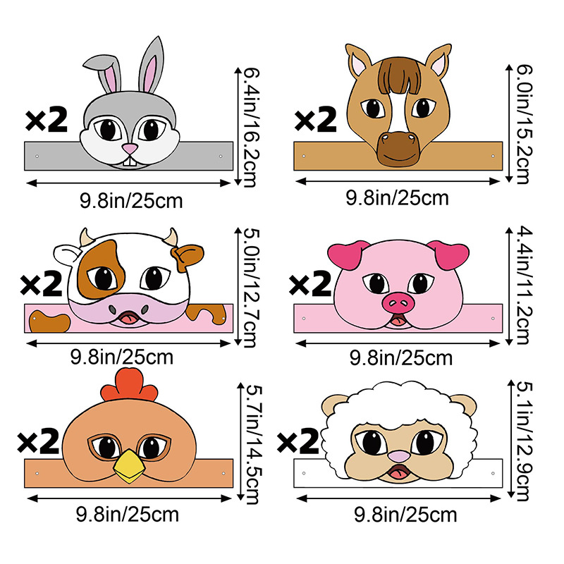 Маска-ободок бумажная Домашние животные 12 шт