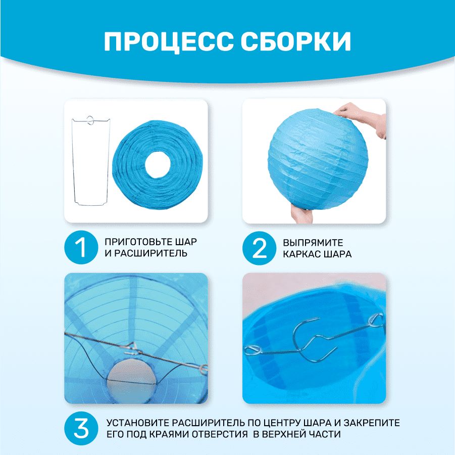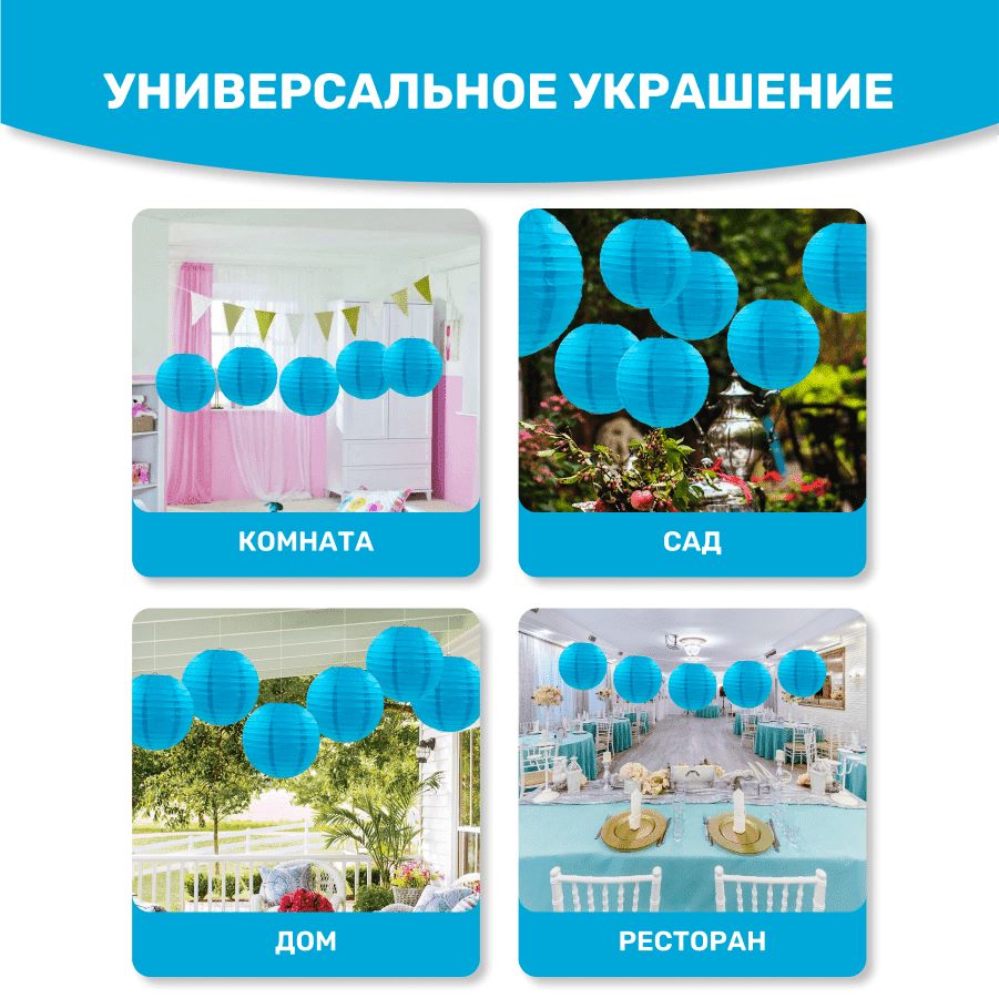 В комплект входит 8 бумажных фонариков и лента.