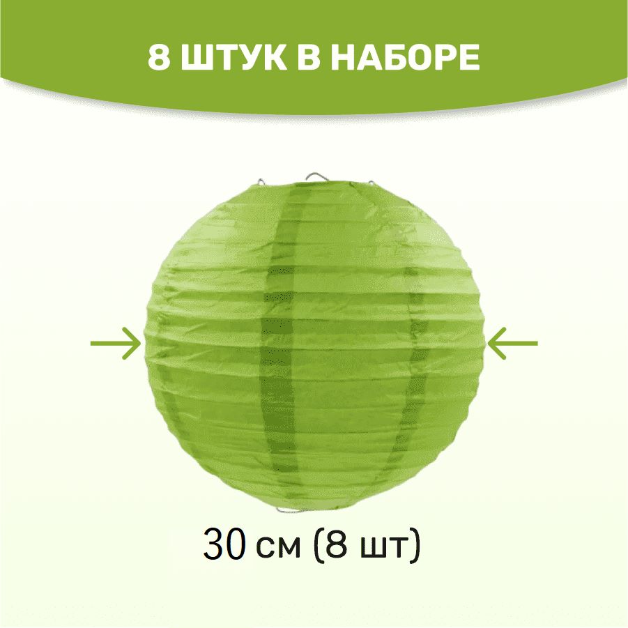 Комплект подвесные фонарики 30 см х 8 шт, темно-салатовый