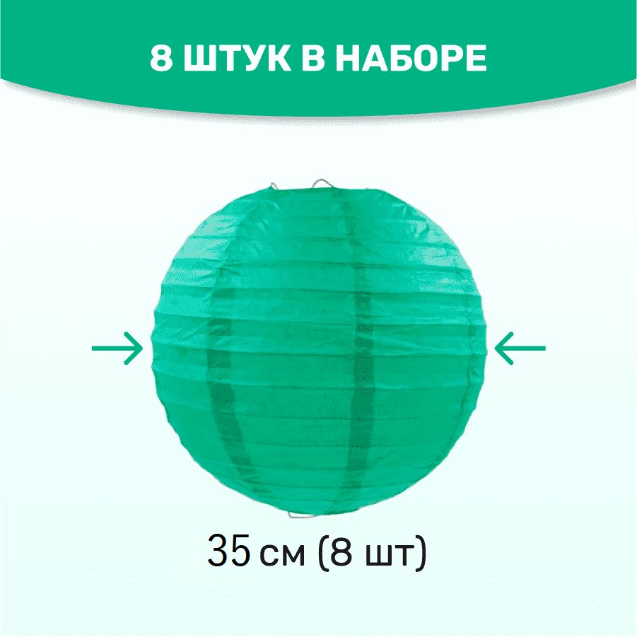В комплект входит 8 бумажных фонариков и лента атласная.
