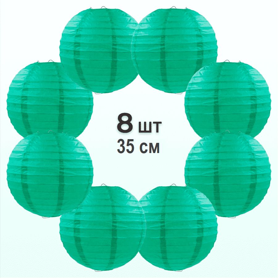 Комплект подвесные фонарики 35 см х 8 шт, изумрудный