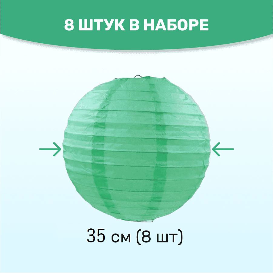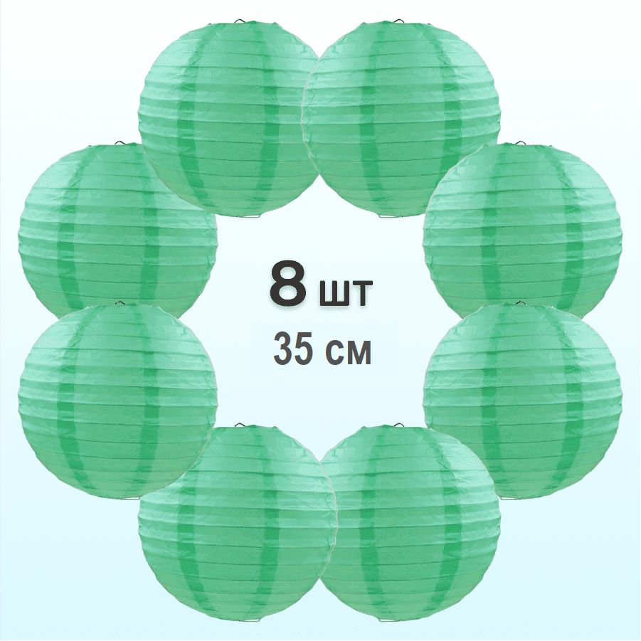 Комплект подвесные фонарики 35 см х 8 шт, мятный