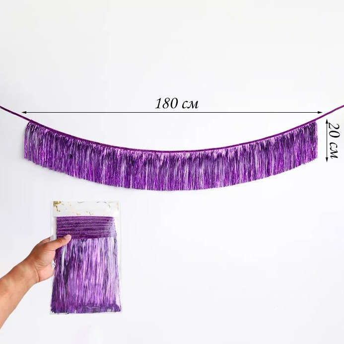 Растяжка бахрома 20см х 1,8м, металлик фиолетовый