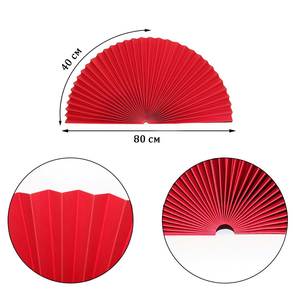 Веер-гармошка 180г/м 80 см, красный
